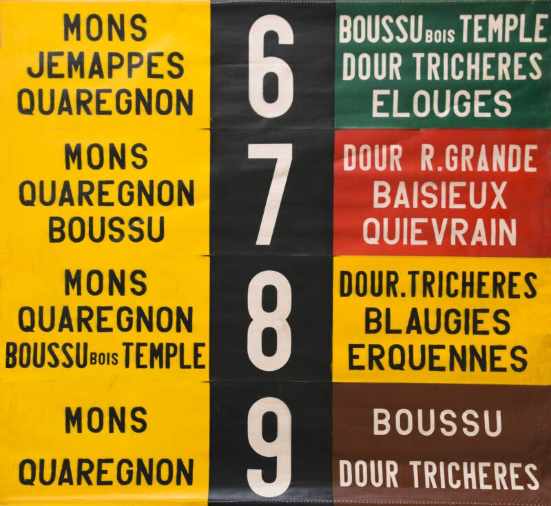 De lijnengroep 6-9 verliet Mons in de richting van Quaregnon. Dat werd met de kleur geel aan de linkezijde aangeduid. Daarna vervolgden de lijnen hun weg naar verschillende bestemmingen. Die bestemmingen zijn met een individuele kleur aan de rechterkant van het lijncijfer aangegeven.